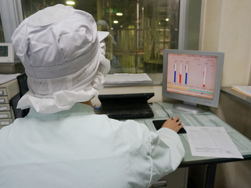 原料の投入から製造・包装まで、コンピュータ制御による高度な生産管理システムにより、品質管理・衛生管理を徹底。さらに人の目で異物・異変がないかを確認します。
